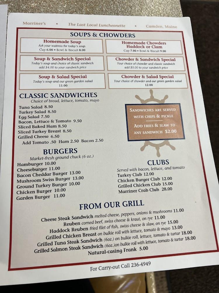 The menu at Marriner's is a delightful mix of seafood and comfort food, with something to suit every palate. Signature seafood dishes include fish & chips, scallops, and clam strips, each prepared to perfection. The prices remain reasonable, with dinners typically ranging from $10 to $20. Breakfast options feature inventive omelets and delectable pancakes, framing a complete dining experience.